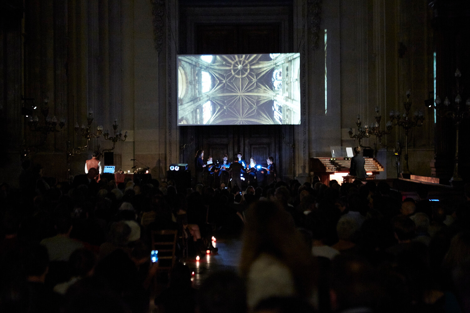 A site specific creation at the Church Saint-Eustache in the center of Paris, with participation of Baptiste-Florian Marle-Ouvrard playing the organ, the vocal ensemble La Tempête, American choreographer Elsa Wolliaston, and inter-religious group Abraham